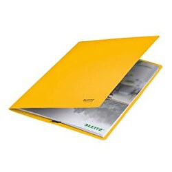 Pútavé a kvalitné kartónové obaly. Jeden z najpoužívanejších typov obalu na ochranu a prenos dokumentov. Gumičky v rohoch zabraňujú vykĺznutiu dokumentov. 100 % recyklovaný kartón, neutrálna uhlíková stopa, kompletne recyklovateľné, s ekologickým certifikátom Blue Angel. Farba žltá.| Vlastnosti produktu | |
