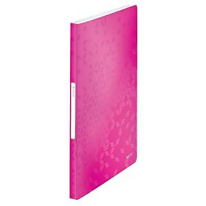Katalógová kniha na prezentáciu dokumentov formátu A4, do ktorých sa často nahliada. Vyrobená z polypropylénu v dizajne WOW v žiarivých farbách. Vybavená 40 čírymi vreckami hrúbky 45 mic. a samolepiacou chrbtovou etiketou na popis. Väčšie balenie 10 ks. Kapacita 80 listov. Rozmery (š × v × h) 233 × 310 × 16 mm. Farba metalická ružová.| Vlastnosti produktu | |