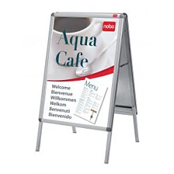 Rám na zobrazovanie informácií, plagátov alebo propagačných ponúk do interiéru aj exteriéru. Mechanizmus otvárania na klip, antireflexná fólia z PVC na ochranu pred špinou a prachom, vkusný hliníkový rám s tmavosivými rohovými spojkami. Verzia „A“ so stojanom. Formát A1. Rozmery v × š × h : 1 095 × 605 × 651 mm.| Vlastnosti produktu | |