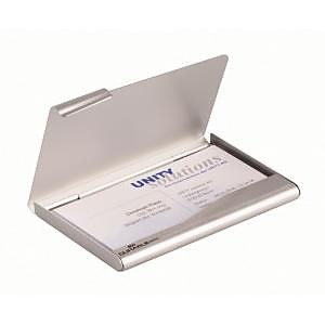 Elegantná a praktická hliníková krabička na vizitky v matnej úprave. Vnútorné rozmery 90 × 55 mm. Kapacita 20 vizitiek. Farba strieborná.| Vlastnosti produktu | |