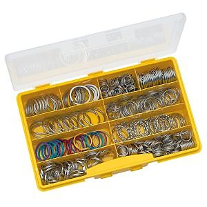 Poniklované kovové krúžky na kľúče dodávané v sade 300 ks v mixe priemerov. Priemery krúžkov: 16, 20, 25, 26, 30 , 35 a 38 mm.| Vlastnosti produktu | |
