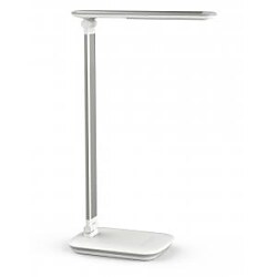 Lampa s integrovaným USB typu A na nabíjanie smartfónu a 5-stupňovým stmievačom s dotykovou funkciou na základni svietidla. Energeticky úsporná trieda „A“ (spektrá A++ - E) s 24 LED žiarovkami bez možnosti ich výmeny so životnosťou 20 000 hodín s teplým bielym svetlom 3 000 °K. Svietivosť 2 060 lx pri vzdialenosti 35 cm od stola, svetelný tok 410 lúmenov, extrémne nízka spotreba energie cca 8 kWh / 1 000 h. Sklopná a otočná svetelná hlavica 26 × 5 cm, stabilný podstavec 18 × 13 cm so závažím a podložkou proti poškodeniu dosky stola. Rameno z eloxovaného hliníka, dĺžka 36,5 cm, výška normálnej pracovnej pozície 41 cm, dĺžka kábla 1,8 m. Farba biela.| Vlastnosti produktu | |