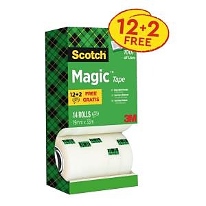 Zvýhodnené balenie 14 ks pások z prírodných vlákien Scotch® Magic™ rozmerov 19 mm × 33 m v praktickom pozdĺžnom stojanovom balení. Páska sa jednoducho odvíja a strihá, je odolná voči starnutiu a pôsobeniu UV žiarenia. Popisovateľná perom, ceruzkou, značkovačom.| Vlastnosti produktu | |