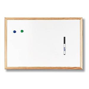 Biela magnetická popisovateľná tabuľa so svetlým dreveným rámom.| Vlastnosti produktu | |