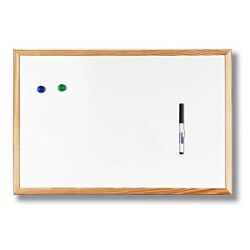 Biela magnetická popisovateľná tabuľa so svetlým dreveným rámom.| Vlastnosti produktu | |