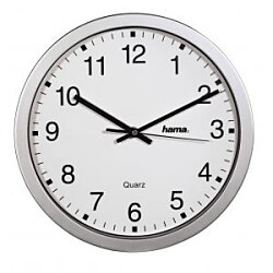 Quartz hodiny s analógovým zobrazením času. Veľký biely ciferník s arabskými číslicami a sekundovou ručičkou, hmotnosť 520 g, priemer 30 cm, hrúbka 4,5 cm, materiál plast, farba rámu strieborná. Batéria AA je súčasťou balenia. Farba strieborná.| Vlastnosti produktu | |