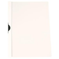 Obal z pevného polypropylénu s priehľadnou prednou stranou a kovovým vyklápacím klipom v čiernej farbe. Formát A4. Kapacita 1 - 30 listov. Väčšie balenie 25 ks. Farba biela.| Vlastnosti produktu | |