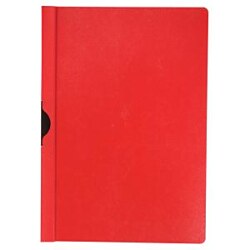 Obal z pevného polypropylénu s priehľadnou prednou stranou a kovovým vyklápacím klipom v čiernej farbe. Formát A4. Kapacita 1 - 30 listov. Väčšie balenie 25 ks. Farba červená.| Vlastnosti produktu | |