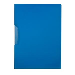 Obal z pevného polypropylénu s priehľadnou prednou stranou vo farbe obalu a priehľadným vyklápacím klipom z plastu. Formát A4. Kapacita 1 - 30 listov. Väčšie balenie 25 ks. Farba modrá.| Vlastnosti produktu | |