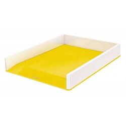Stohovateľný kancelársky odkladač na dokumenty, časopisy a zložky v dvojfarebnom prevedení v metalických farbách WOW s lesklým povrchom. Farba žltá.| Vlastnosti produktu | |