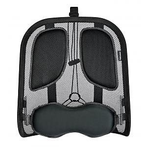 Opierka chrbta s vertikálne nastaviteľnou bedrovou opierkou pamäťovej peny na zníženie napätia chrbta. Tri napínacie nadstavce eliminujú potrebu opätovného nastavenia. Opierka jemne kopíruje obrysy chrbta, sieťovaná látka zabezpečuje vetranie miesta dotyku s chrbtom. Použiteľná na ľubovoľnú stoličku.Farba čierna.| Vlastnosti produktu | |