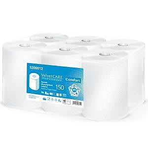 Pevné a mäkké 2-vrstvové uteráky AutoCut Velvet CARE Professional AutoCut 150 Comfort - 150 metrov a 600 útržkov na rolke. Priemer vnútornej dutiny 38 mm, 6 roliek v balení, 100 % celulóza| Vlastnosti produktu | |