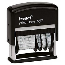 Samofarbiaca dátumová a textová pečiatka súčasne. Výška písma 3,8 mm. Možnosť výberu z textov: DOŠLO DŇA, ZAÚČTOVANÉ, VYBRANÉ DŇA, VLOŽENÉ DŇA, FAKTUROVANÉ, @ - MAIL DŇA, INVENTÚRA, OBJEDNANÉ, ODOSLANÉ, UPOMIENKA, VYBAVENÉ DŇA,ZAPLATENÉ. Náhradné podušky typ 6/4817.| Vlastnosti produktu | |