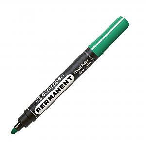 Permanentný popisovač s nevysýchajúcim atramentom (vydrží aj 14 dní bez vrchnáka) na alkoholovej báze, vhodný na väčšinu povrchov. Odolný voči vode, poveternostným podmienkam aj oderu. Hrot okrúhly, šírka stopy 2,5 mm. Väčšie balenie 10 ks v jednej farbe. Farba zelená.| Vlastnosti produktu | |