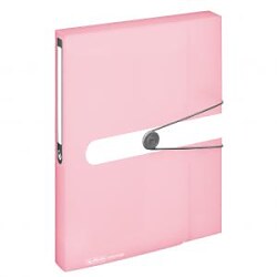 Box z polypropylénu Pastell na dokumenty formátu A4. Kapacita 400 listov, šírka chrbta 4 cm. Zatváranie sivou gumičkou o sivý plastový krúžok, nalepený chrbtový štítok na popis obsahu. Väčšie balenie 10 ks. Farba priehľadná ružová.| Vlastnosti produktu | |