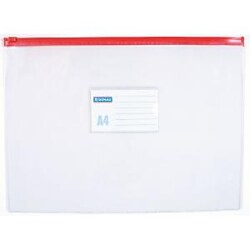 Plastový obal z PVC s uzatváraním na zips a štítkom na popis. Formát A4, rozmery 330x240 mm. Väčšie balenie 24 ks. Zips v mixe farieb.| Vlastnosti produktu | |