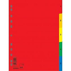 Rozraďovač formátu A4 vyrobený z tuhého polypropylénu. Jednotlivé stránky v rôznych farbách, multiperforácia na použitie rozraďovača v krúžkovom aj pákovom zakladači. Väčšie balenie 25 sád.| Vlastnosti produktu | |