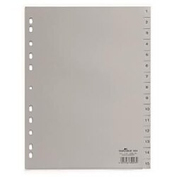 Číselný rozraďovač z polypropylénu. Formát A4, euro-dierovanie. Balenie jedna sada v polyesterovom sáčku. Väčšie balenie 20 sád. Farba sivá.| Vlastnosti produktu | |