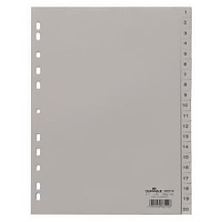 Číselný rozraďovač z polypropylénu. Formát A4, euro-dierovanie. Balenie jedna sada v polyesterovom sáčku. Väčšie balenie 20 sád. Farba sivá.| Vlastnosti produktu | |