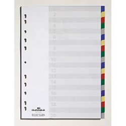 Farebný rozraďovač z polypropylénu s 20 oddielmi bez popisu. Formát A4, eurodierovanie, popisovateľný papierový titulný list na ľahkú orientáciu v dokumentoch. Balenie jedna sada v polyesterovom sáčku. Väčšie balenie 20 sád.| Vlastnosti produktu | |