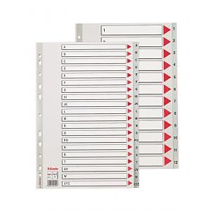 Abecedný rozraďovač z polypropylénu. Eurodierovanie, popisovateľný kartónový titulný list na ľahkú orientáciu v dokumentoch. Formát A4 maxi rozmerov 245×297 mm umožňuje rozlíšenie dokumentov založených v zakladacích obaloch. Balenie jedna sada v polyesterovom sáčku. Väčšie balenie 10 sád. Farba sivá.| Vlastnosti produktu | |