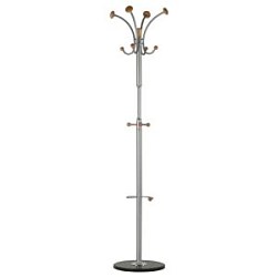 • obsahuje 4 veľké a 4 malé držiaky na kabáty s oblým dreveným zakončením, 4 držiaky na tašky, držiak na dáždniky