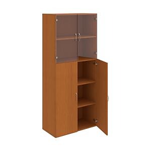 Policová skriňa Hobis Drive D 5 80 08 - čerešňa/čerešňa, 4 police, 2x plné a sklenené dvere.