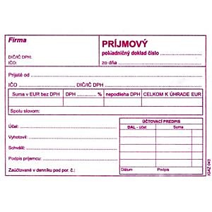 Príjmový pokladničný doklad s DPH, formát A6, blok 100 listov.| Vlastnosti produktu | |