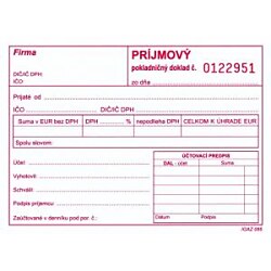 Príjmový pokladničný doklad s DPH, samoprepis. Blok formátu A6, 100 listov, číslovaný.| Vlastnosti produktu | |