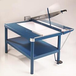 Veľká kovová robustná páková rezačka s vlastným stojanom a uzamykateľným nožom. Brúsený vrchný a spodný nôž z kvalitnej nožiarskej ocele Solingen, rozkladateľný bočný stôl, nožný pedál na zabezpečenie prítlaku rezaného papiera, priehľadný ochranný kryt ostria z plexiskla, 2 bočné dorazy, zadný doraz. Predný doraz, fixovateľný ručnou pákou, vysúvateľný do 275 mm. Mierka v cm/ inch, DIN formáty.K rezačke je možné objednať zariadenie na rezanie tenkých prúžkov a zariadenie umožňujúce vytvoriť laserový lúč, indikujúci reznú líniu.| Vlastnosti produktu | |