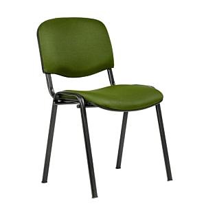 Stohovateľná konferenčná stolička s látkovým poťahom, sedadlo so spodním plastovým krytom.