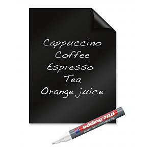 Rolka s vysoko efektívnym elektrostatickým nábojom popisovateľná neónovým popisovačom edding 725, obj. kód ED072549. Tento druh fólie je využiteľný v miestnostiach, kde svetlo sťažuje prezentáciu, na začiernenie, resp. stmavnutie okien, i ako originálny spôsob zviditeľnenia menu v reštaurácii. 25 listov šírky 60 cm s perforáciou po 80 cm. Plne recyklovateľná. Elektrostatický náboj umožní jej priľnutie na rôzne povrchy bez použitia lepidla. Fóliu jednoducho odmotáte, v perforovanom mieste odtrhnete a zľahka pritlačíte na daný povrch. Povrch fólie umožní tiež udržanie papierových poznámok bez ich nalepenia. Väčšie balenie 4 rolky. Rozmery š × v : 60 × 80 cm.| Vlastnosti produktu | |