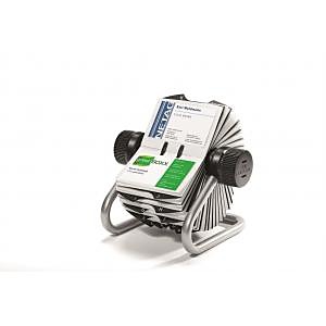 Rotačný vizitkár s 200 obojstrannými vreckami rozmerov 104 × 72 mm na 400 vizitiek. Dodávaný s 25 abecednými rozraďovačmi A - Z. Ľahký prístup k vizitkám, rýchla obsluha vďaka špeciálnemu rotačnému mechanizmu. Farba strieborná.| Vlastnosti produktu | |