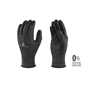 Pletené antistatické rukavice, materiál DELTAnocut® vysoko odolné vlákno a uhlíkové vlákno, dlaň a konce prstov povrstvené polyuretánom bez rozpúštadiel. Hrúbka úpletu 18.| Vlastnosti produktu | |