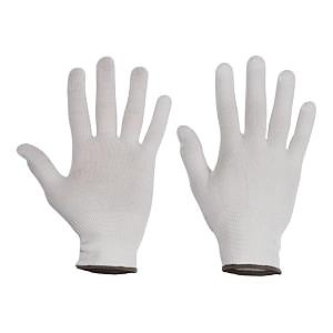 Biele bezšvové pletené rukavice z kučeraveného nylonu, s pružnou manžetou.| Vlastnosti produktu | |