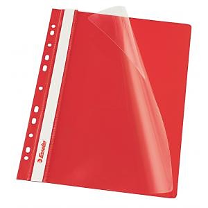 Obal s eurodierovaním z kvalitného PVC na uloženie dierovaných dokumentov do formátu A4. Predná strana priehľadná, pozdĺž chrbta biely obojstranný papierový zasúvací štítok. Rozmery 310 × 235 mm. Farba červená.| Vlastnosti produktu | |