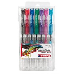 Jednorazový roller edding 2185 crystaljelly plnený špeciálnym gélom. Hrot pera uložený v akrylovej špičke umožňuje plynulé a súčasne veľmi presné písanie. Šírka stopy 0,7 mm. Sada 7 štandardných farieb.| Vlastnosti produktu | |