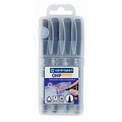 Permanentný popisovač určený na popisovanie transparentných fólií do spätných projektorov, na plastické hmoty, sklo a pod. Šírka stopy 1 mm. Sada 4 farieb.| Vlastnosti produktu | |