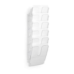Sada stojanov na prospekty so 6 priehradkami veľkosti A4 na letáky, časopisy, firemnú literatúru a ďalšie. Vyrobená z priehľadného plastu odolného voči opotrebeniu. Vhodná na montáž na stenu, na vystavenie literatúry na recepciách a v kanceláriiách. Rozmery : 1080mm x 247mm x 100mm. Farba priehľadná.| Vlastnosti produktu | |