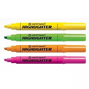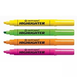 Zvýrazňovač s celofluorescenčným plášťom. Reflexný pigmentový atrament s vysokým stupňom flourescencie a odolnosti proti UV žiareniu. Pre zvýrazňovanie textov na všetkých druhoch papiera. Klinový hrot, šírka stopy 1 - 4,6 mm.| Vlastnosti produktu | |