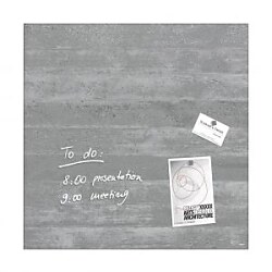 Magnetické tabule z tepelne tvrdeného bezpečnostného skla (EN 12150-1) hrúbky 15 mm s jednoduchou a bezpečnou montážou s certifi kátom TUV dodajú vašim kanceláriám, konferenčným miestnostiam, jedálňam i domácnostiam exkluzívny vzhľad. Sú popisovateľné kriedovými popisovačmi Sigel a za sucha zotierateľné utierkou z mikrovákna. Súčasťou balenia sú 3 super silné neodymové magnety a montážny materiál. Pri používaní príslušenstva Sigel je garantovaná 25-ročná záruka na magnetický sklenený povrch tabule. Rozmery 48 × 48 cm. Dizajn podhľadový betón.| Vlastnosti produktu | |
