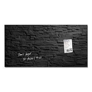 Magnetické tabule z tepelne tvrdeného bezpečnostného skla (EN 12150-1) hrúbky 15 mm s jednoduchou a bezpečnou montážou s certifi kátom TUV dodajú vašim kanceláriám, konferenčným miestnostiam, jedálňam i domácnostiam exkluzívny vzhľad. Sú popisovateľné kriedovými popisovačmi Sigel a za sucha zotierateľné utierkou z mikrovákna. Súčasťou balenia sú 3 super silné neodymové magnety a montážny materiál. Pri používaní príslušenstva Sigel je garantovaná 25-ročná záruka na magnetický sklenený povrch tabule. Rozmery 91 × 46 cm. Dizajn bridlica.| Vlastnosti produktu | |