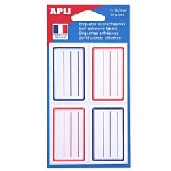 Školské štítky modré a červené linky a rám permanentné lepidlo 36x56 mm. Vrecúško s 24 štítkami. Na knihy a zošity.| Vlastnosti produktu | |