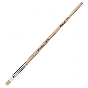 Plochý štetec s krátkymi štetinami. Drevená rukoväť lakovaná bezfarebným lakom a hliníkovým úchytom, s hrúbkou stopy 2 mm. Určený k maľovaniu a kresleniu na papier.| Vlastnosti produktu | |