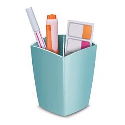 Stojan na ceruzky a perá v modernom dizajne, vhodný do kancelárie, aj do bytu. Vynikajúca stabilita, dve priehradky. Kapacita 32 pier, celkové rozmery 74 × 74 × 95 mm. Materiál 100% recyklovateľný, vysokokvalitný plast. Stojan GreenSpirit v mentolovej farbe je vyrobený zo 100% recyklovaných materiálov, jednotlivé kusy sa môžu navzájom jemne farebne líšiť. Väčšie balenie 12 ks. Farba mentolová.| Vlastnosti produktu | |