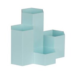 Stojan na perá so šesťuholníkovými trubicami je vyrobený z mimoriadne odolného a nárazuvzdorného polypropylénu. Vďaka tvaru včelieho plástu ho možno zoskupiť, aby sa ušetrilo miesto. 4 trubice, usporiadané v rôznych výškach, ponúkajú voľný priestor na pravítka, štetce, nožnice, perá a samozrejme aj na menšie predmety na stole, ako sú strúhadlá a gumy.| Vlastnosti produktu | |