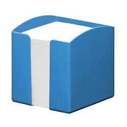 Stojan na poznámkový blok z recyklovaných plastov v kvalite Blue Angel. S 800 lístkami recyklovaného papiera v kvalite Blue Angel, veľkosť 93 x 93 mm. Rozmery: 100 x 105 x 100 mm (Š x V x H). Farba modrá.| Vlastnosti produktu | |