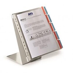 Extrémne pevný stojan na stôl v tvare L. Vyrobený z kovovej platne s plastovým poťahom odolným voči oderu. Dodávaný s 10 displejovými PVC panelmi. Farby panelov: 5 ks červenej a 5 ks modrej.| Vlastnosti produktu | |