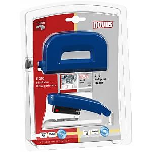 Ľahká praktická kancelárska zošívačka a dierovačka z kolekcie Evolution, dodávaná so spinkami. Zošívačka má vrchný diel z plastu a integrovanú kovovú rozošívačku na zadnej časti. Kapacita náplne 100 spiniek veľkosti No.10. Hĺbka zošívania 3,7 cm. Dierovačka má kovovú základňu, plášť v plastovo-kovovom prevedení a posuvné pravítko. Rozpätie dier 8 cm. Farba modrá/sivá.| Vlastnosti produktu | |