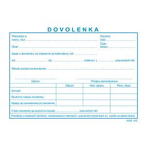 Tlačivo z oblasti práce a mzdy. Dovolenka, A6, blok, 100 listov.| Vlastnosti produktu | |